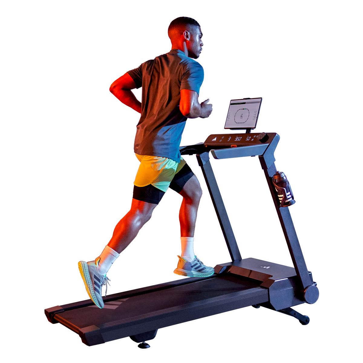 Consola avanzada adidas Console+, es compatible con las apps Zwift y Kinomap, te conecta a una comunidad global de corredores, permitiéndote entrenar en rutas reales y enfrentarte a nuevos retos mientras llevas un registro detallado de tus avances.