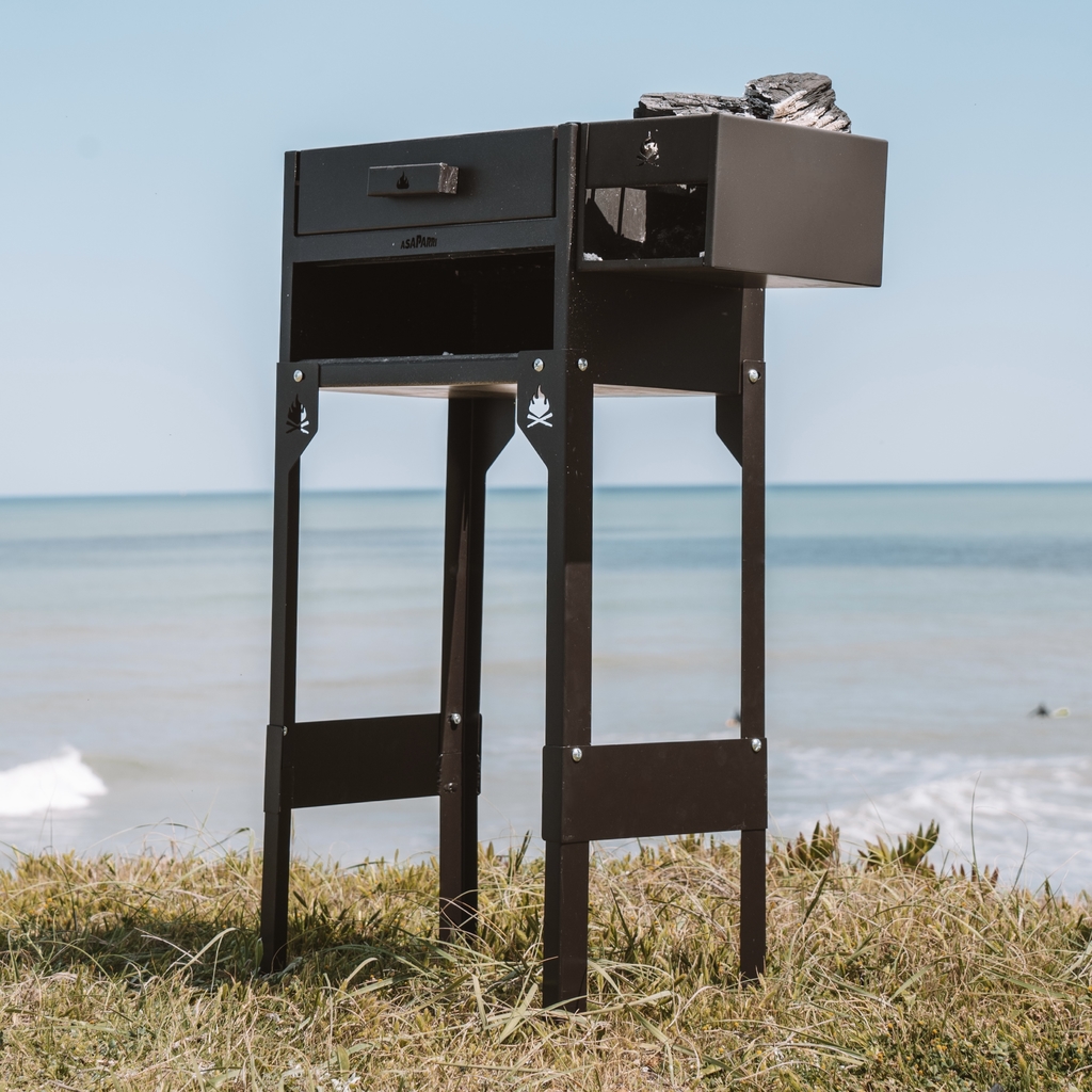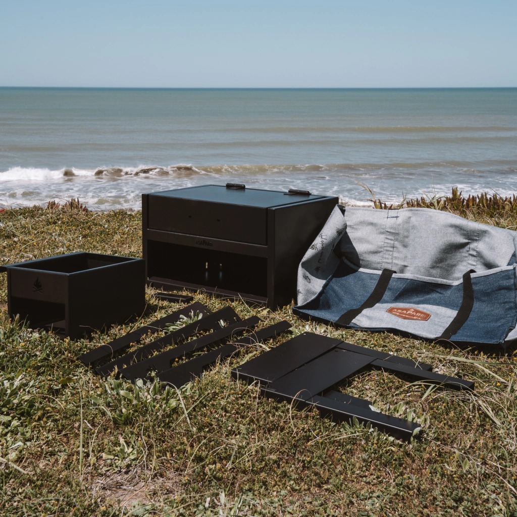 Ideal para llevarlo donde sea y arrancar un asadito! Pensado para que lo tengas en el baúl siempre listo. Se guarda por completo en su bolsito (la parrilla, el brasero y las patas, todo lo que ves en la foto)