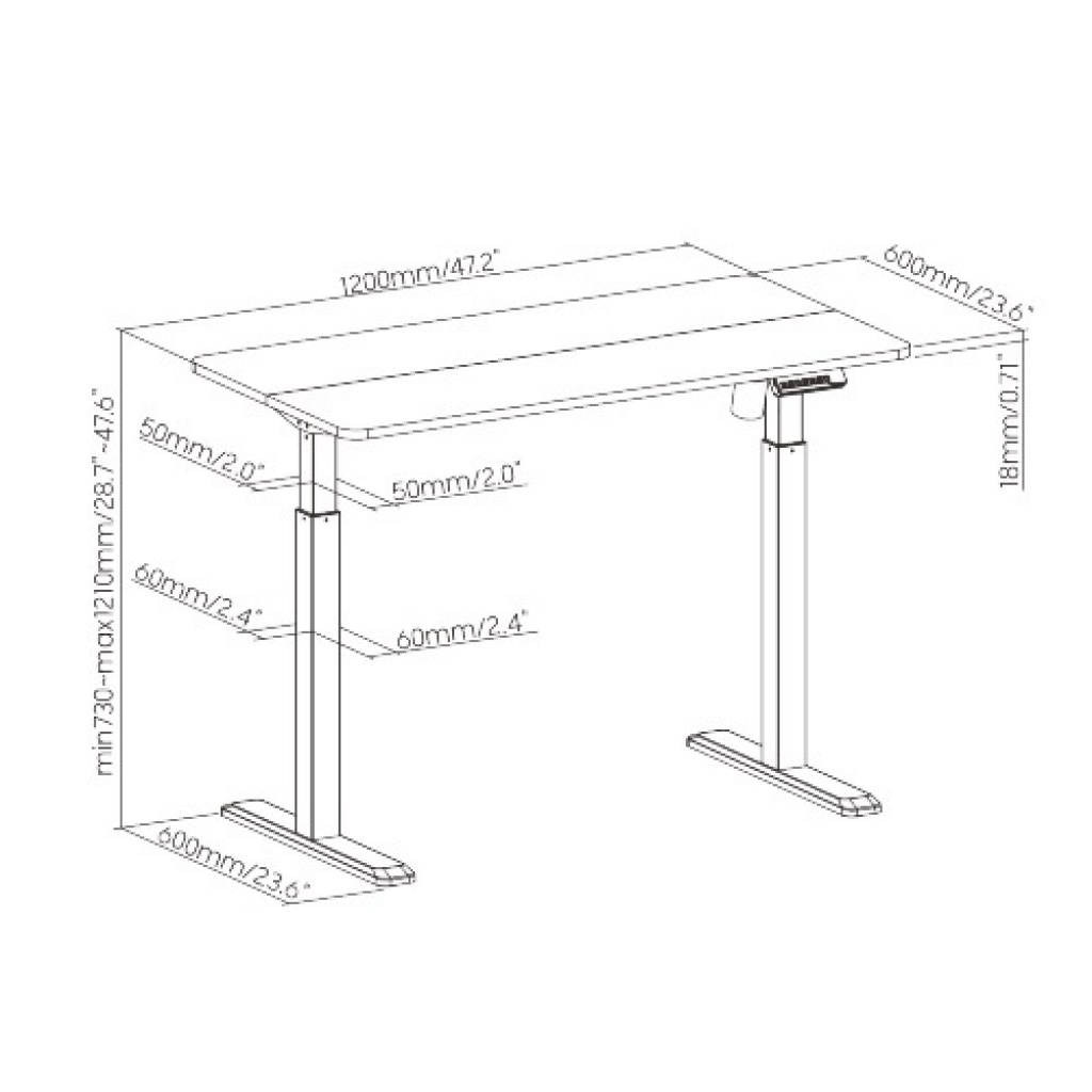 Medidas: 1200 x 600 x 730-1210 mm