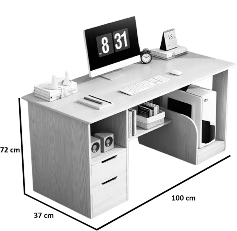 Escritorio PC 2 Cajones 3 estantes 100×37 cm Crema