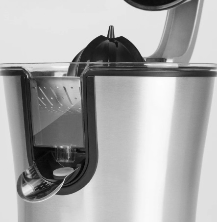 Potente exprimidor eléctrico de cítricos de diseño con carcasa de acero inoxidable