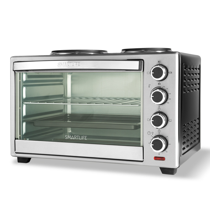 - Accesorios: Bandeja de cocción, rejilla desmontable, agarradera y bandeja junta migas.