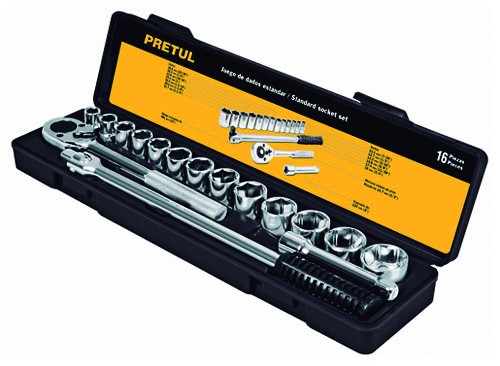Juego de 17 Piezas 13 Dados+ Acc (10-27MM) 1/2″ Caja Plástica Pretul JD1/2X17MM-P