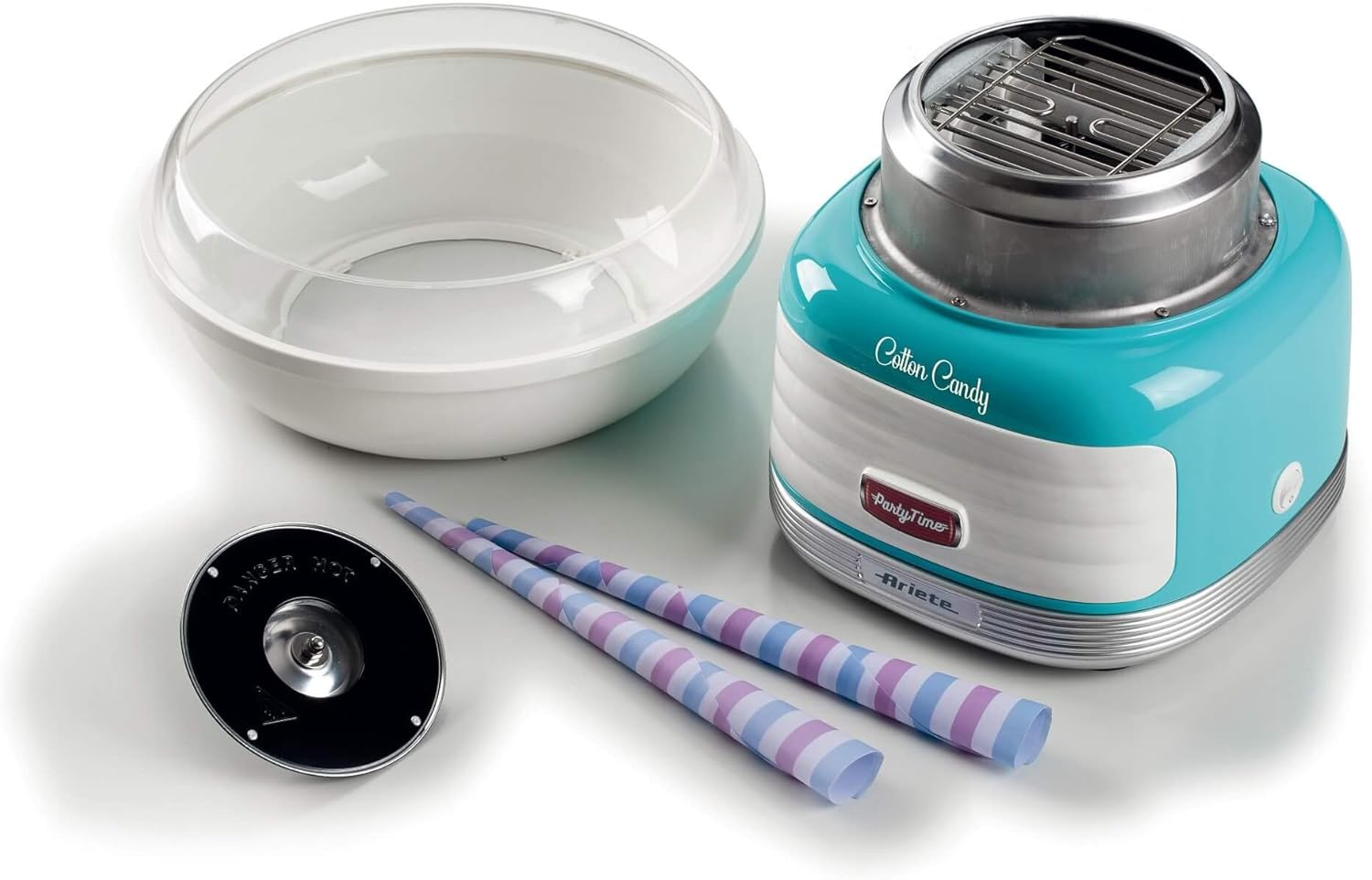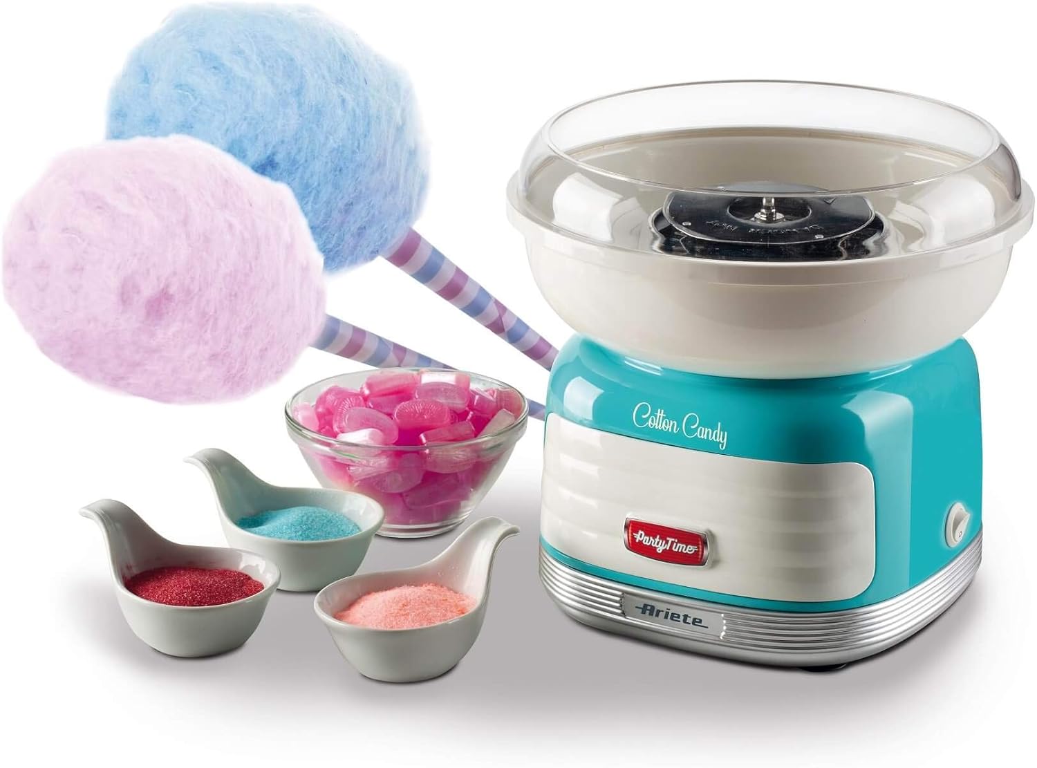 La máquina Cotton Candy para algodón de azúcar de la línea Party Time de Ariete te permite preparar algodón de azúcar en casa como en el parque de atracciones. ¡Perfecto para llevar alegría al hogar, entretener a los niños y hacer que los adultos se sientan pequeños otra vez!