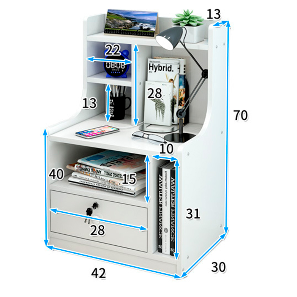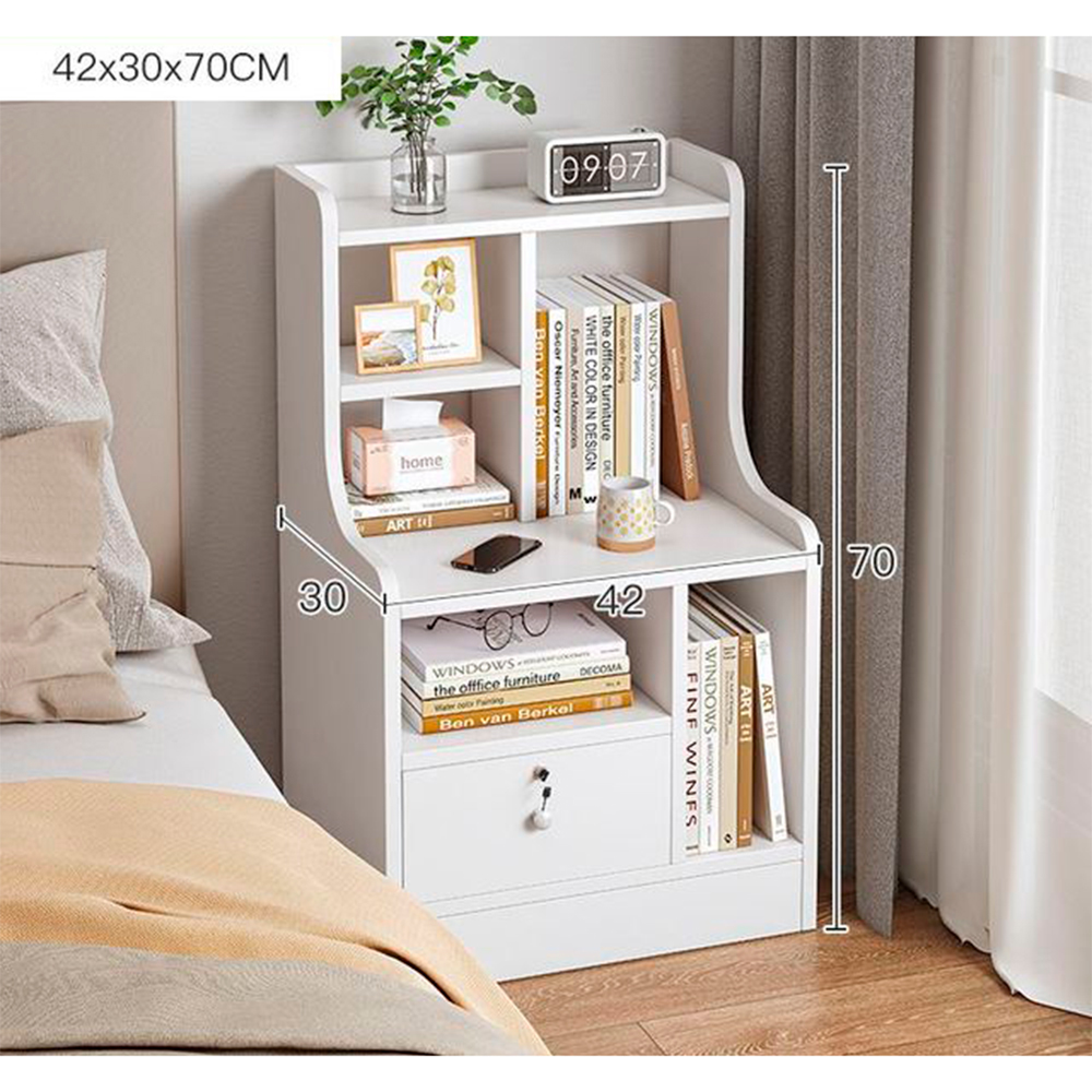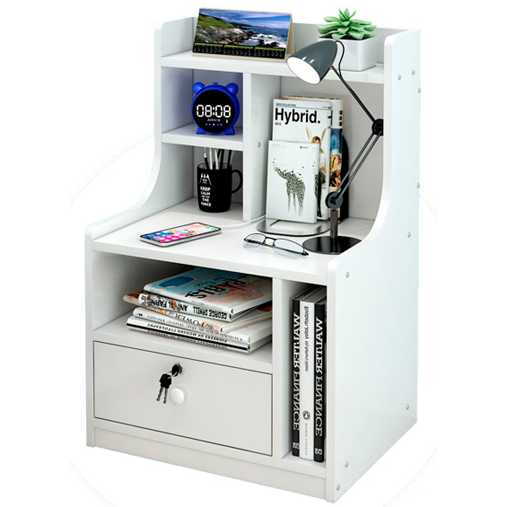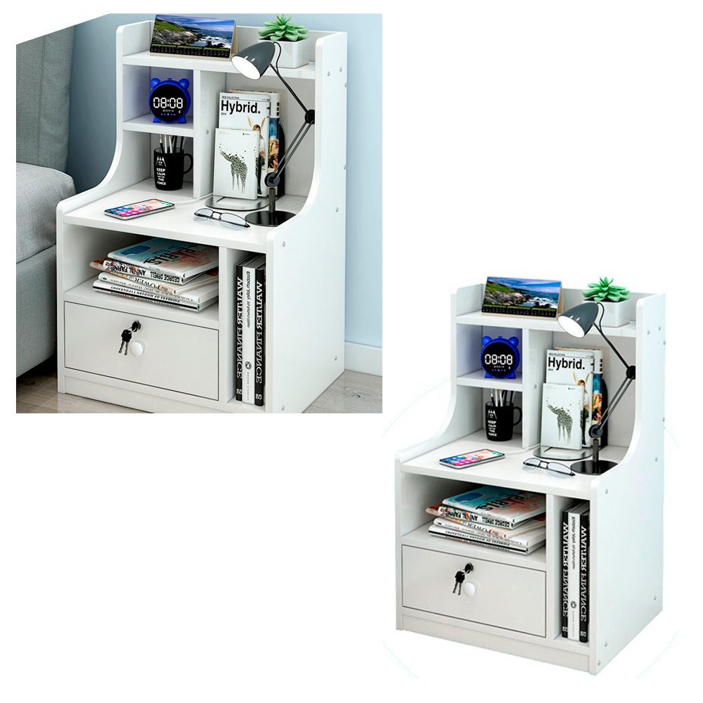 Mesa de Luz Con cajon y estantes Color Blanco 42x30x70 cm