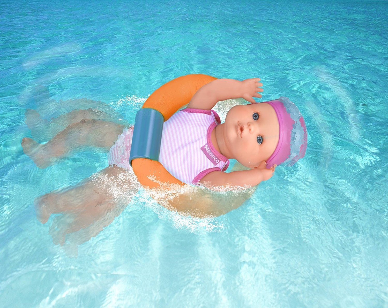 ¡Enseña a tu Nenuco a nadar y disfrutar jugando en el agua! A los bebés les encanta estar en el agua y Nenuco, con su divertido bañador y gorro de baño, quiere aprender a nadar.