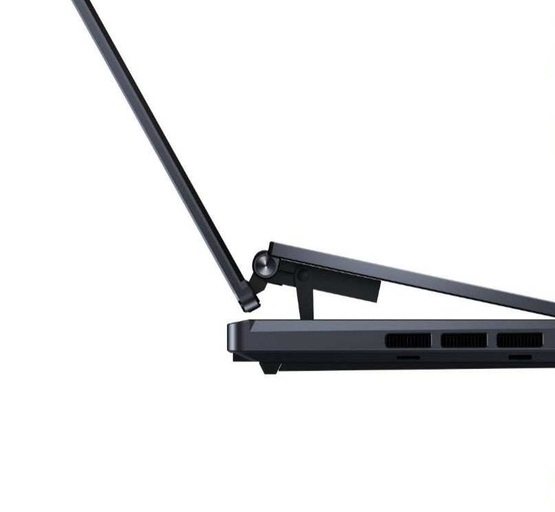 La CPU insignia de Intel y la GPU NVIDIA® de calidad para creadores se enfrían para lograr un rendimiento extremo con la tecnología ASUS IceCool Plus, con la ayuda del nuevo mecanismo AAS Ultra, que ventila el chasis y también inclina la pantalla táctil secundaria ScreenPad™ Plus de última generación para un ángulo cómodo para una experiencia visual fluida e inmersiva.