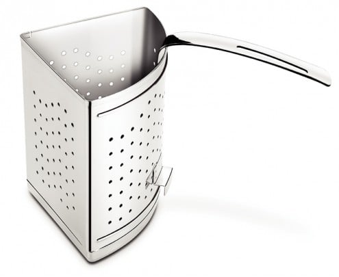 - El recipiente para cozi-pasta tiene asa para auxiliar el manejo y agujeros para escurrir el agua.