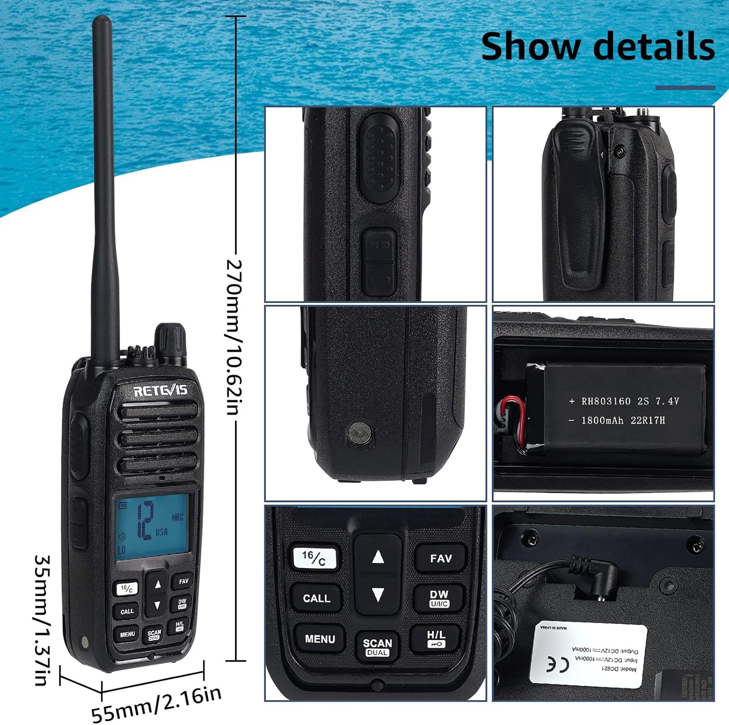 Radio Marino Retevis RM21 Vhf 5W Bateria 1800 Mah IP67 Sumergible Noaa Alcance 10 KM