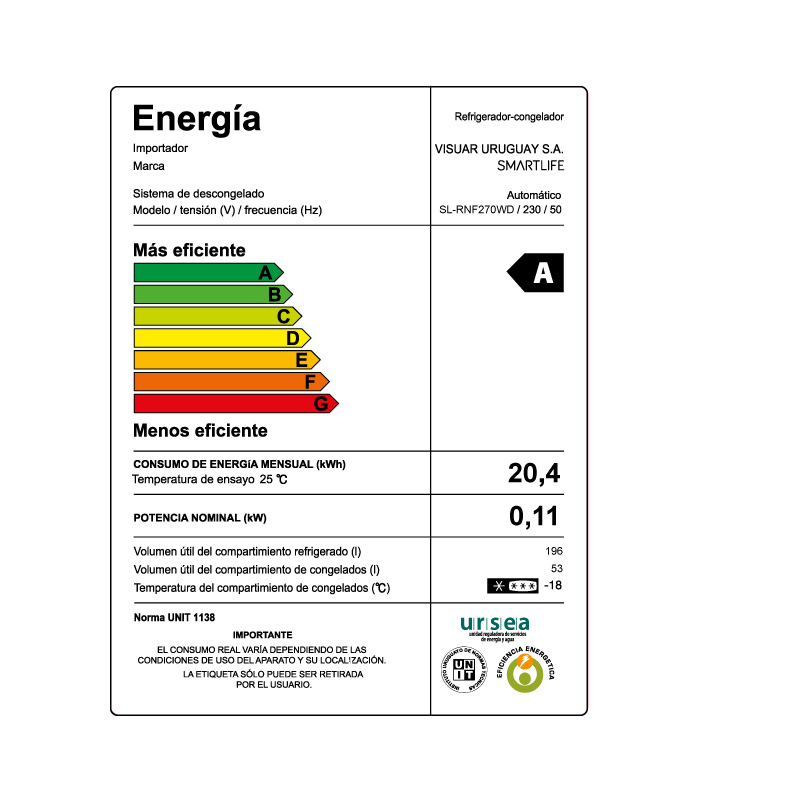 - Capacidad Refrigerador: 196 lts