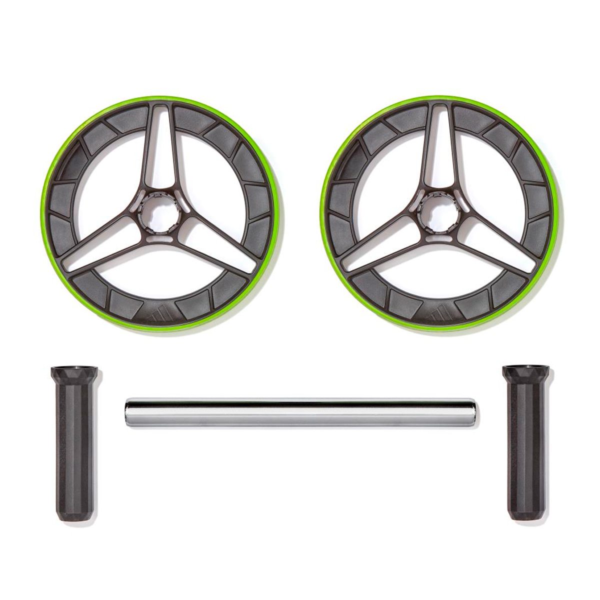 El diseño de doble rueda del modelo Performance ofrece modos para principiantes y avanzados, asegurando que la rueda siga siendo un desafío a medida que aumenta tu fuerza central. Las ruedas pueden ajustarse separadas para mayor estabilidad en el modo principiante, o juntas para un reto más intenso en el modo avanzado.