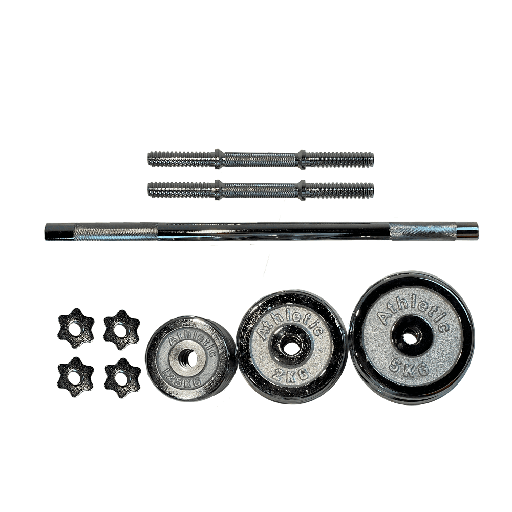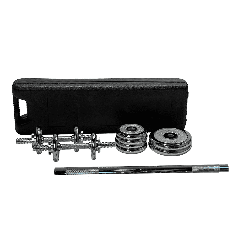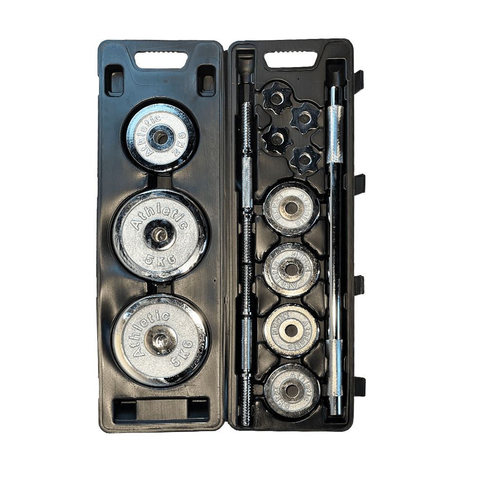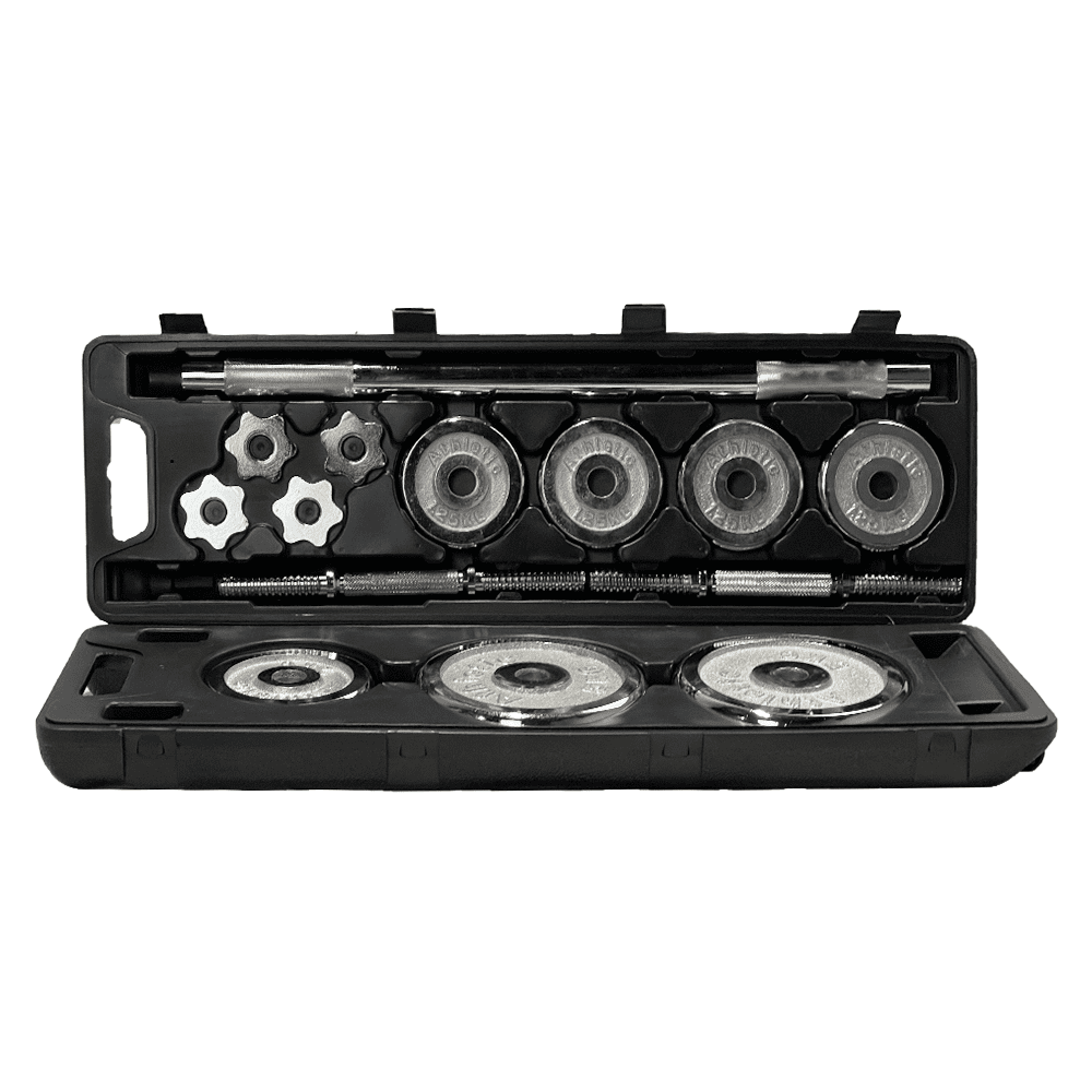 Set De Mancuernas Athletic Y Barra Cromadas Con Valija 30kg