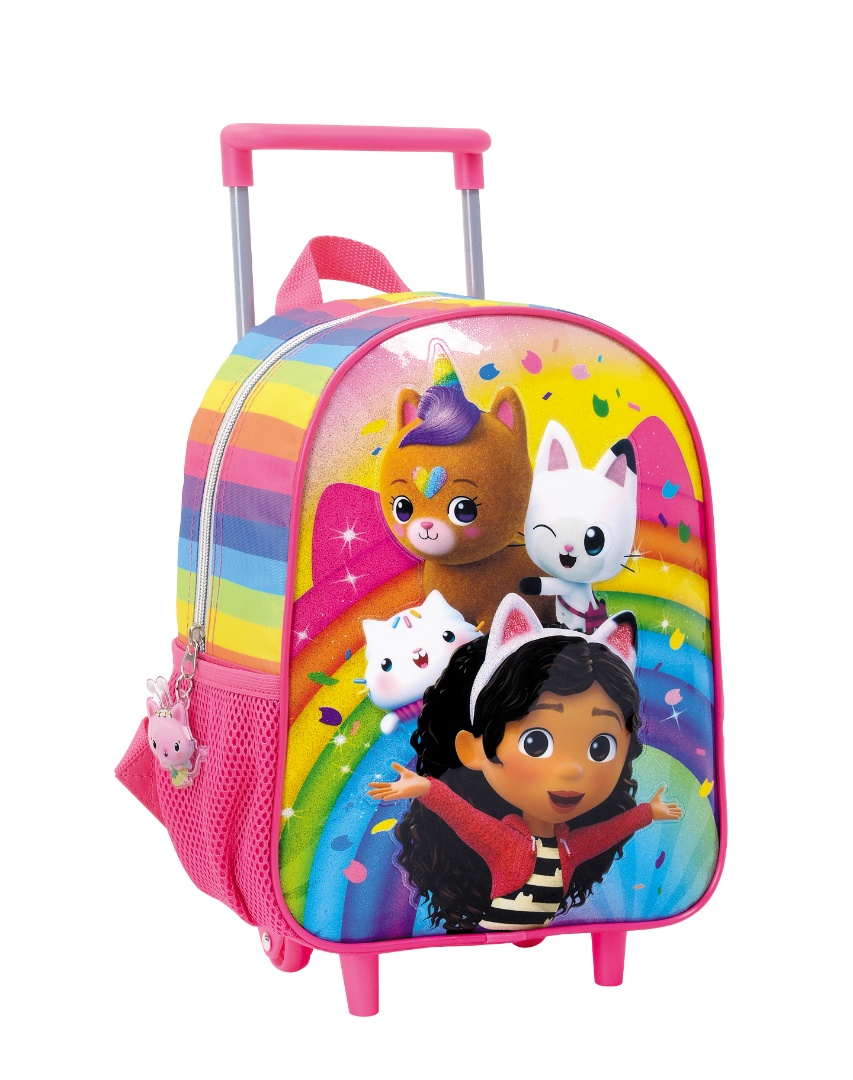 Lonchera y Mochila 30cm con carro con los personajes de Gabby’s Dollhouse. La joven amante de los gatos y su inseparable Pandy Patitas se lo pasan bomba en su mundo animado.