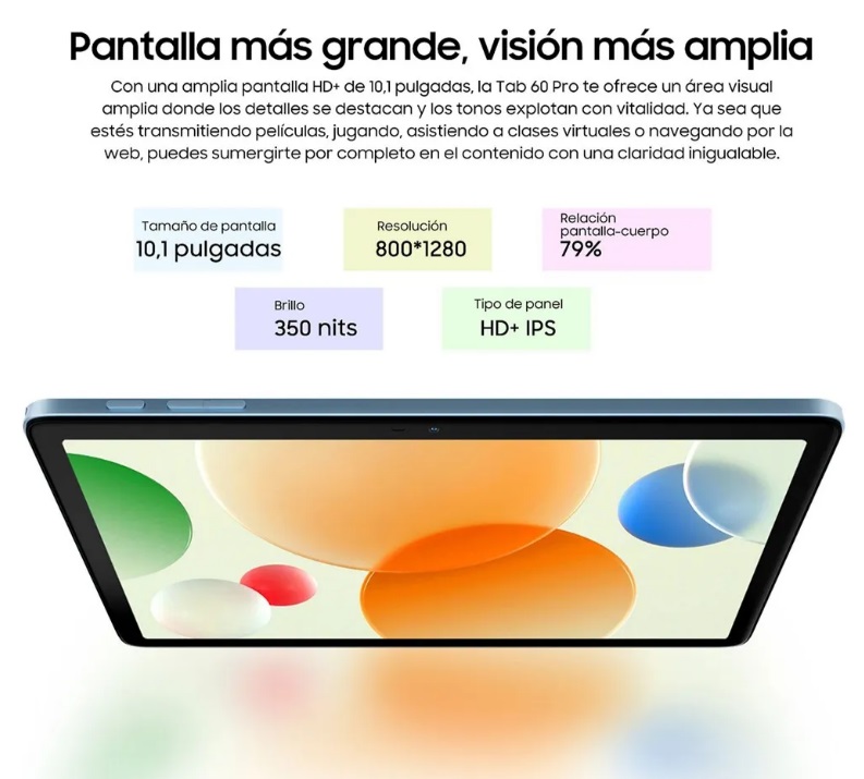 La pantalla IPS de 10.1 pulgadas ofrece una excelente calidad visual con resolución HD+, ideal para leer, mirar películas o navegar en internet. Incorpora protección ocular para cuidar tu vista durante largas horas de uso.